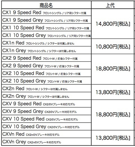 今回からはMicroshift製の専用レバーが付属する、お買い得なモデルが登場するようで、バーコン、ダブルレバーを装備していない方々も導入を検討しやすくなっています。ラインナップは以下のとうり。